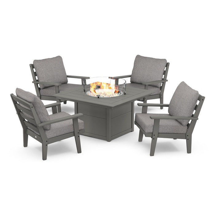 Polywood PWS525-2 Grant Park 5-Piece Deep Seating Conversation Set with Fire Pit Table