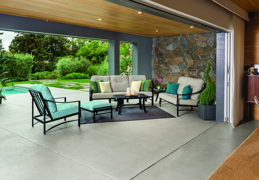 Designed by Peter Homestead, the Kenzo Cushion Collection is an outdoor patio furniture line that exhibits simple, graceful lines and a wide frame. The Kenzo Cushion Collection features Tropitone's exclusive RELAXplus® technology for optimal comfort, longevity, and mildew resistance. Along with the standard outdoor lounge chair, swivel action lounger, love seat, sofa, chaise lounge and ottoman, Kenzo Cushion also offers an outdoor crescent and modular pieces. Crescent furniture creates an intimate chat setting when around Tropitone® Tables or Fire Pits. Modular outdoor furniture can fulfill your custom seating need for any unique space.