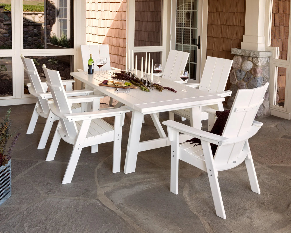 • Includes (6) Modern Curveback Adirondack Dining Chairs and (1) Rustic Farmhouse 39" x 75" Dining Table