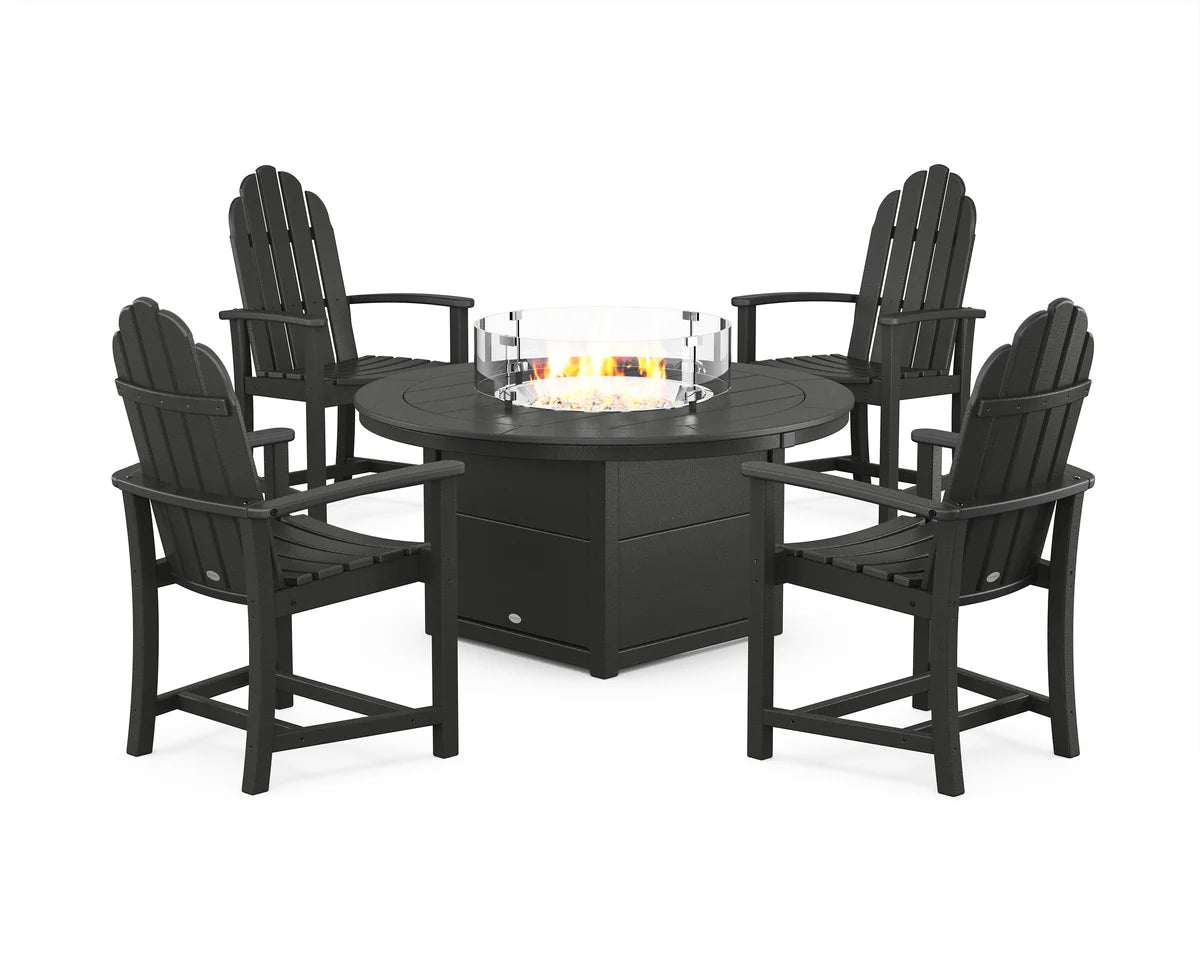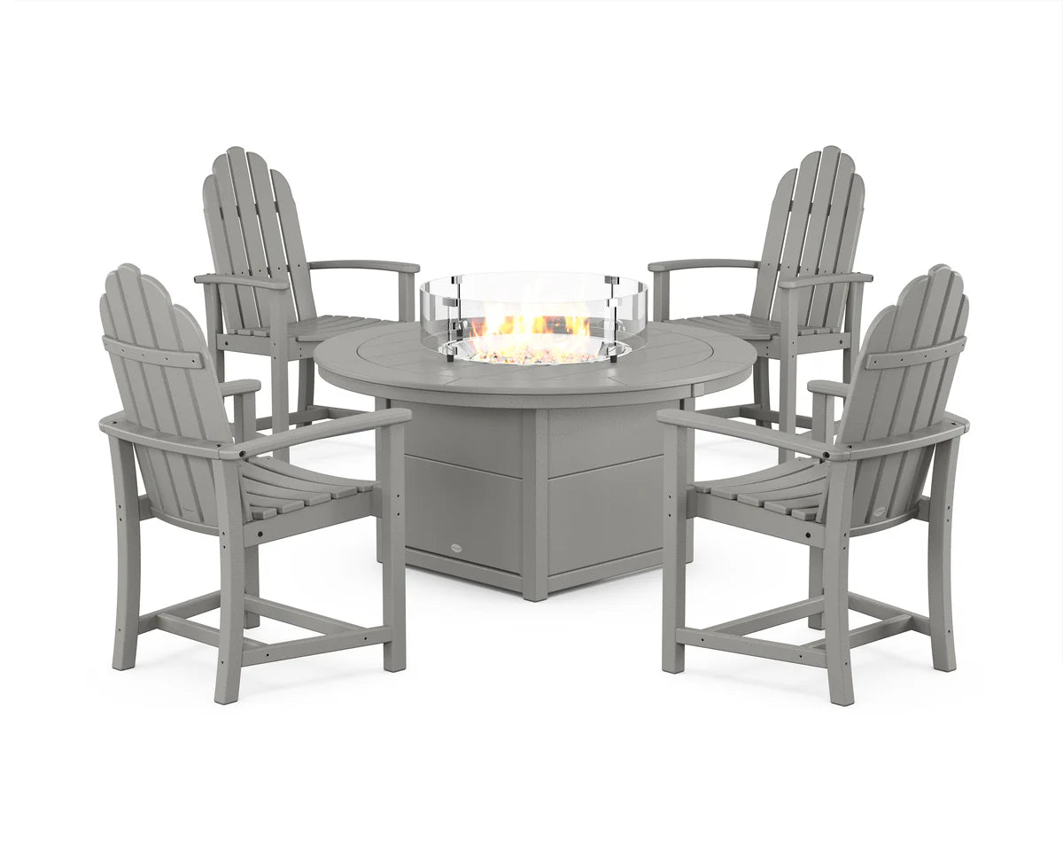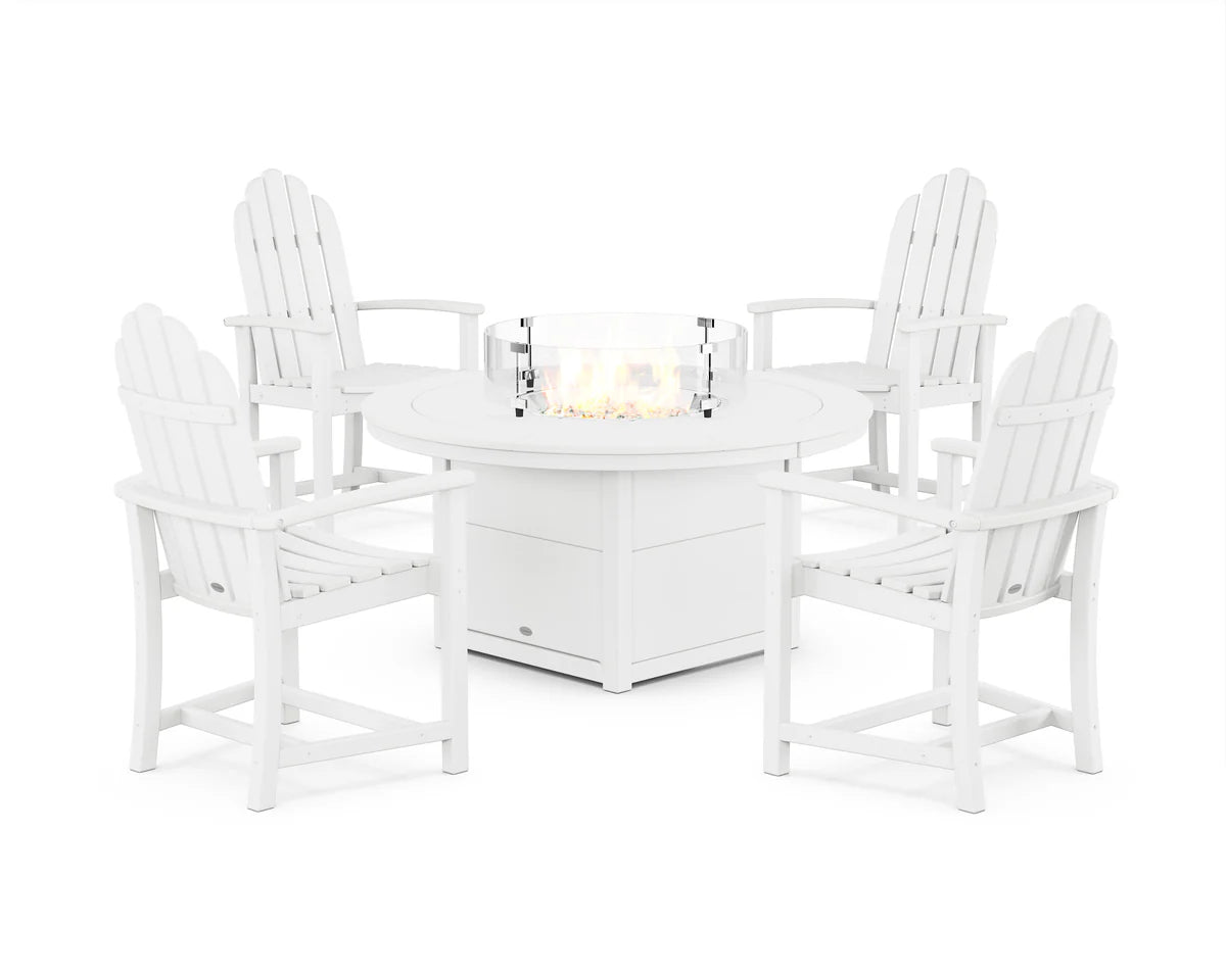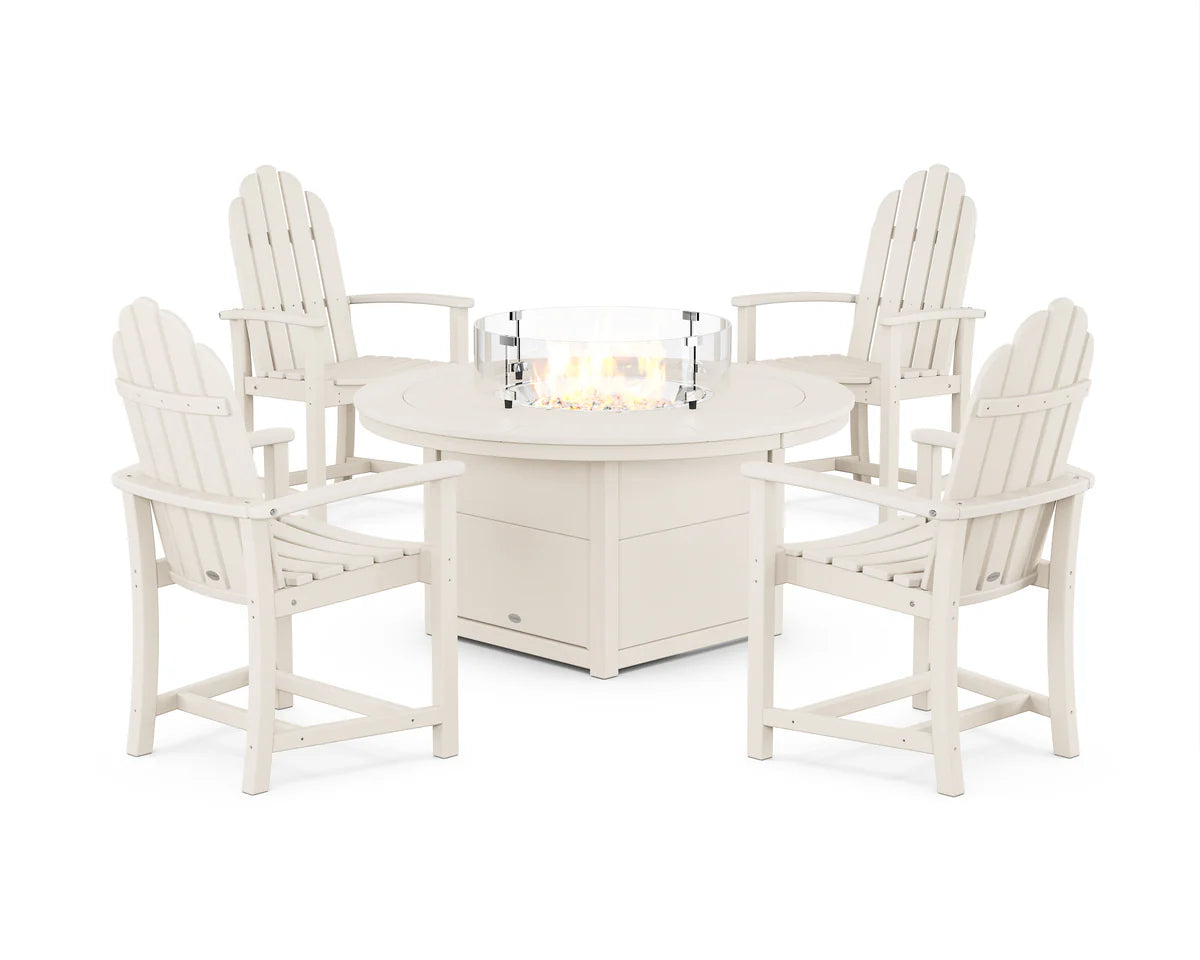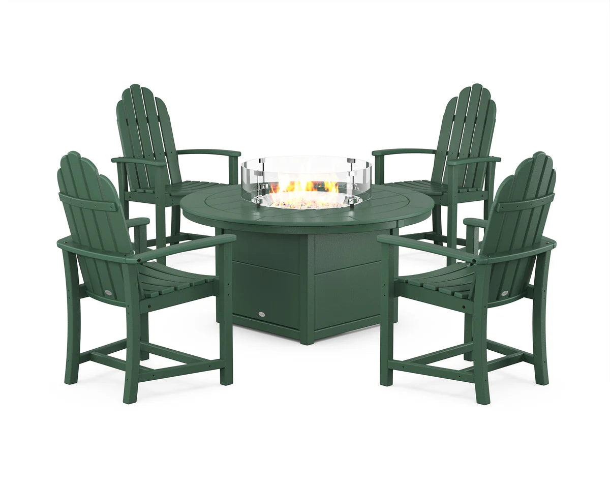 98 in W x 40 in H x 98 in D Classic 4-Piece Upright Adirondack Conversation Set with Fire Pit Table Seats 4 People Overall Set Weight 252 lbs