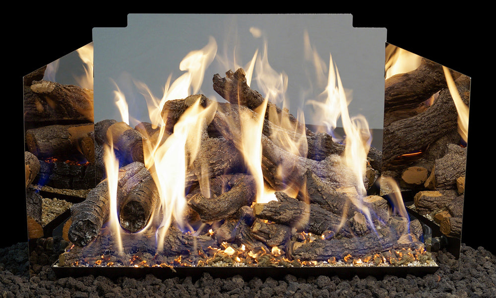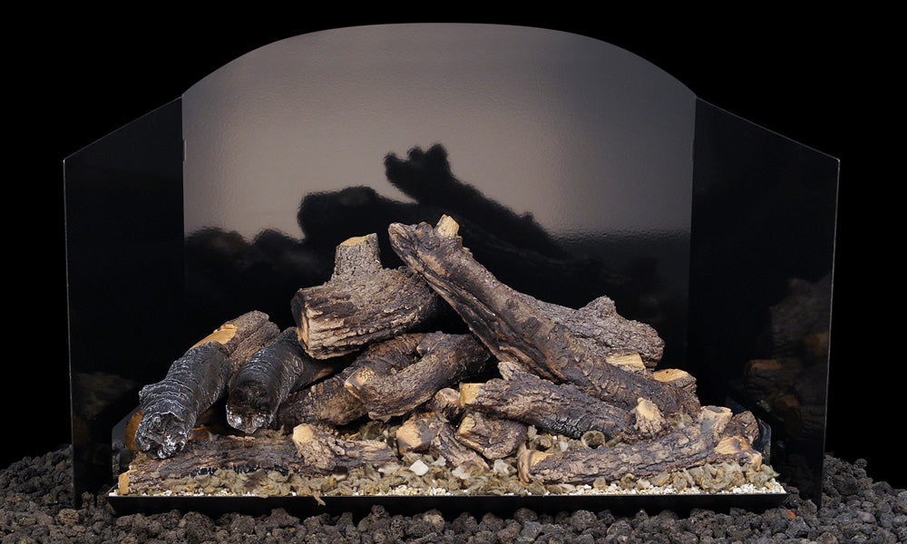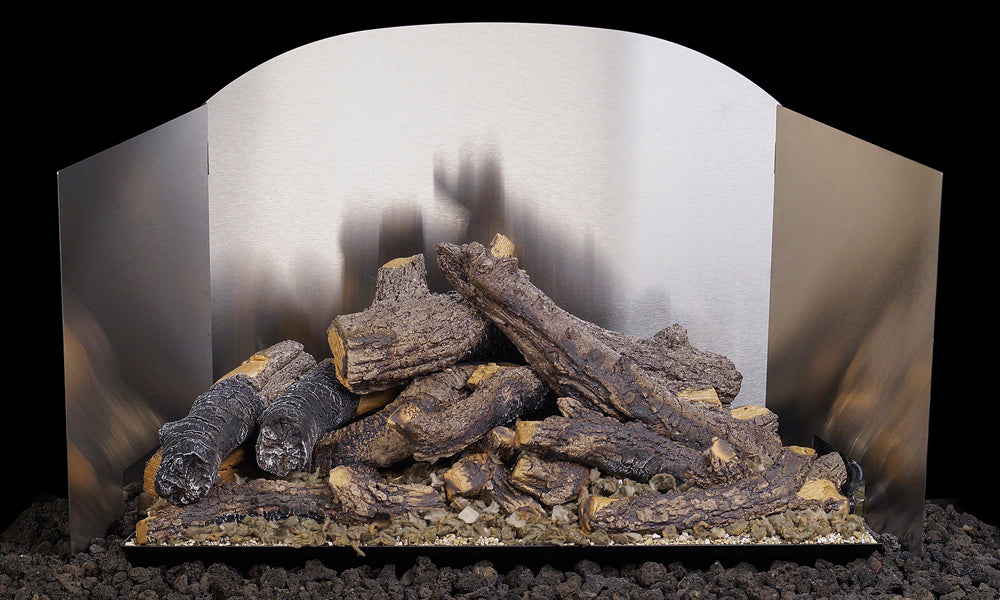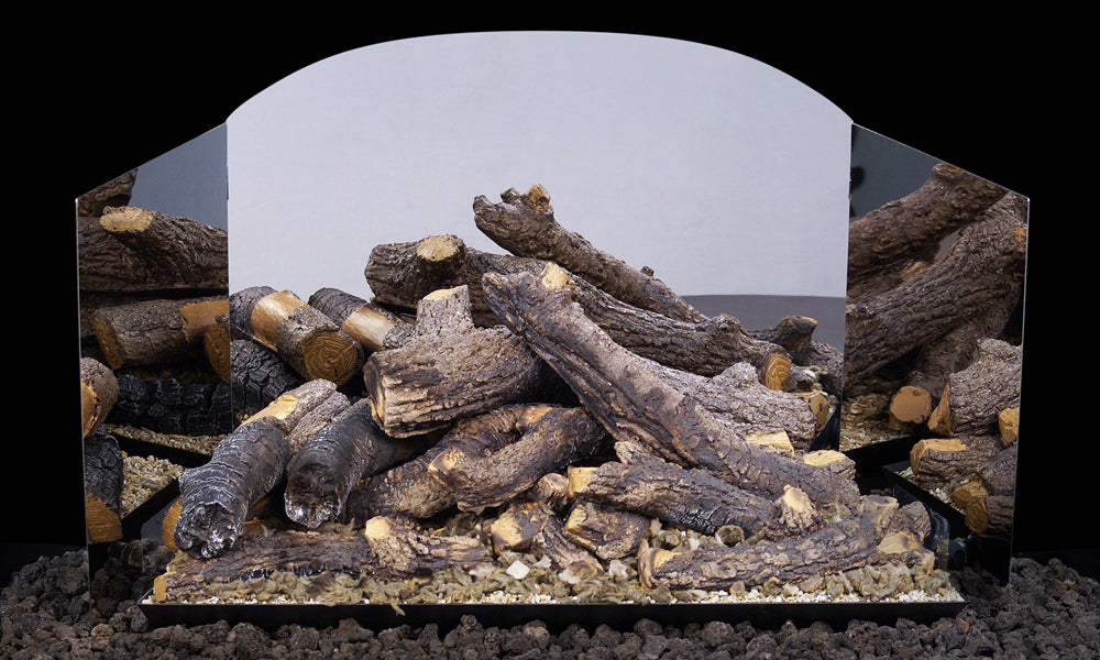 The Real Fyre Fyreback is a premium reflective firebox accessory designed to elevate both the performance and appearance of your gas log fireplace. Installed at the back of your firebox, it enhances flame brightness, increases perceived depth, and protects the back wall from heat exposure.